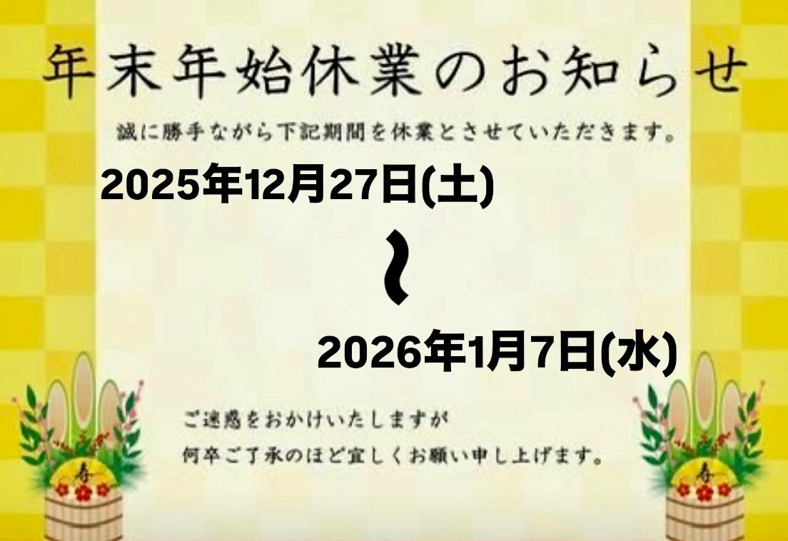 年末年始休業のお知らせを新しく作成する時間が取れないため去年の投稿丸パクリしました💦すみません!!