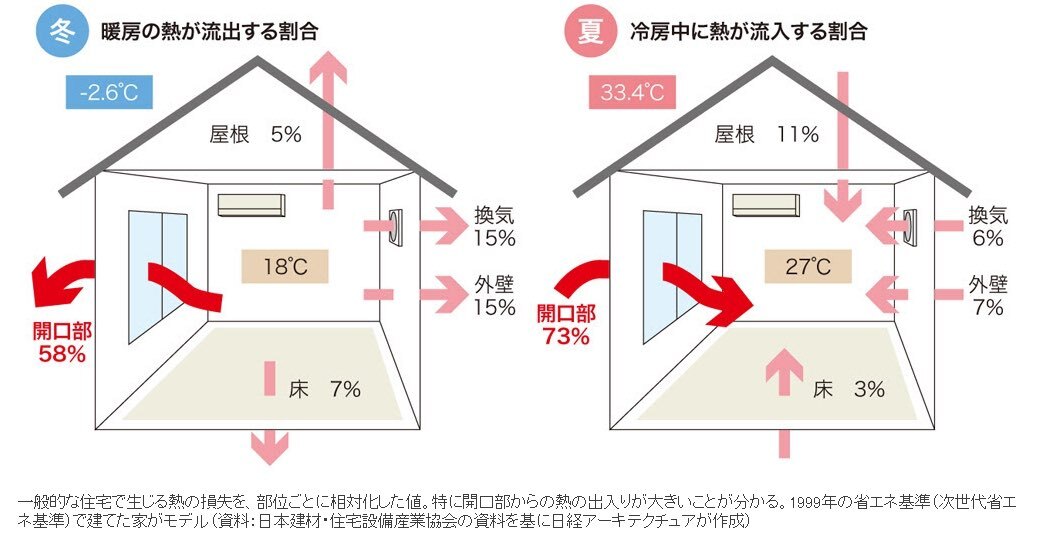 家の寒さ・暑さの最大の原因は、窓(サッシ)と外壁にあります。